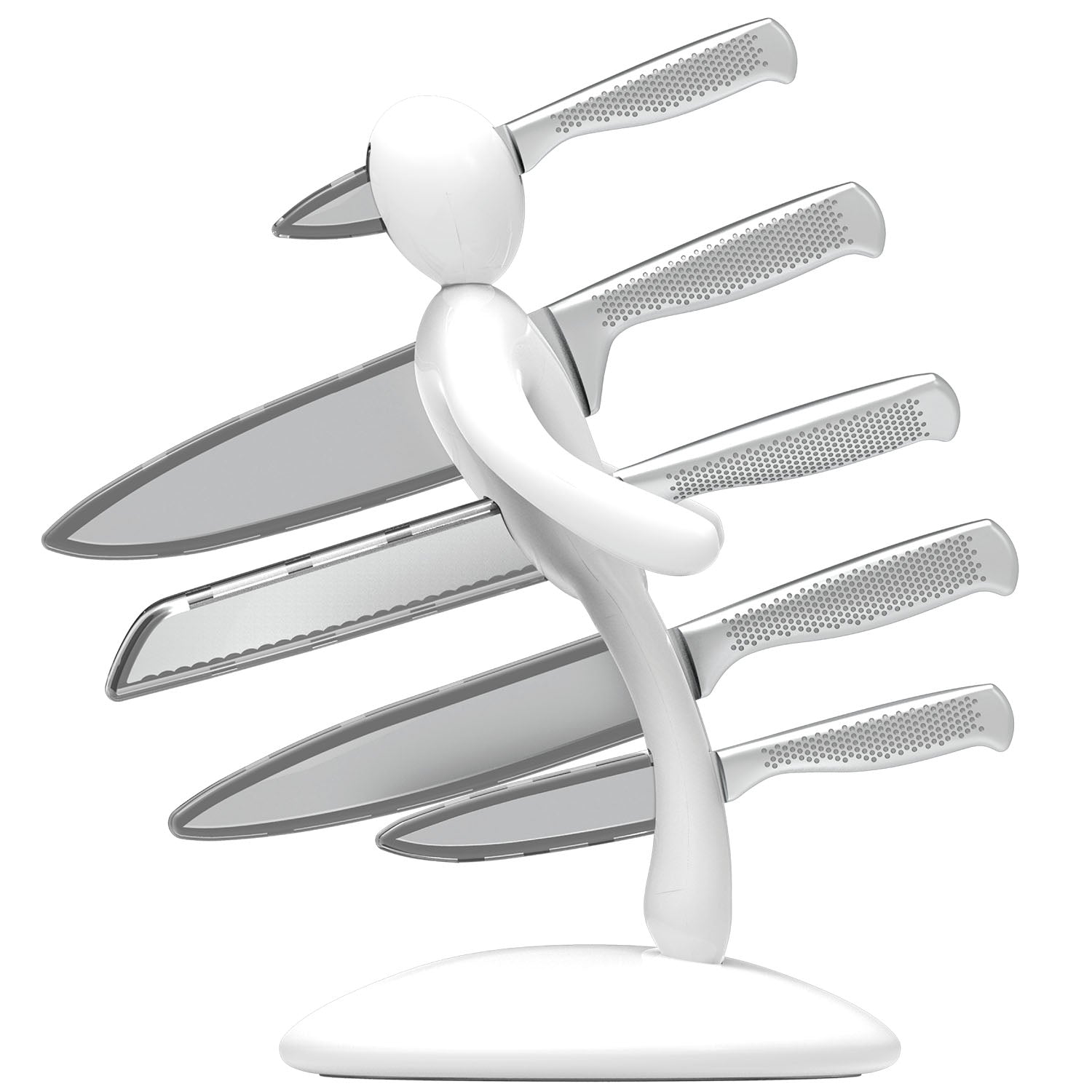 Voodoo/TheEx "Classic Edition" | Set di 5 coltelli in acciaio inox con Supporto in plastica bianca