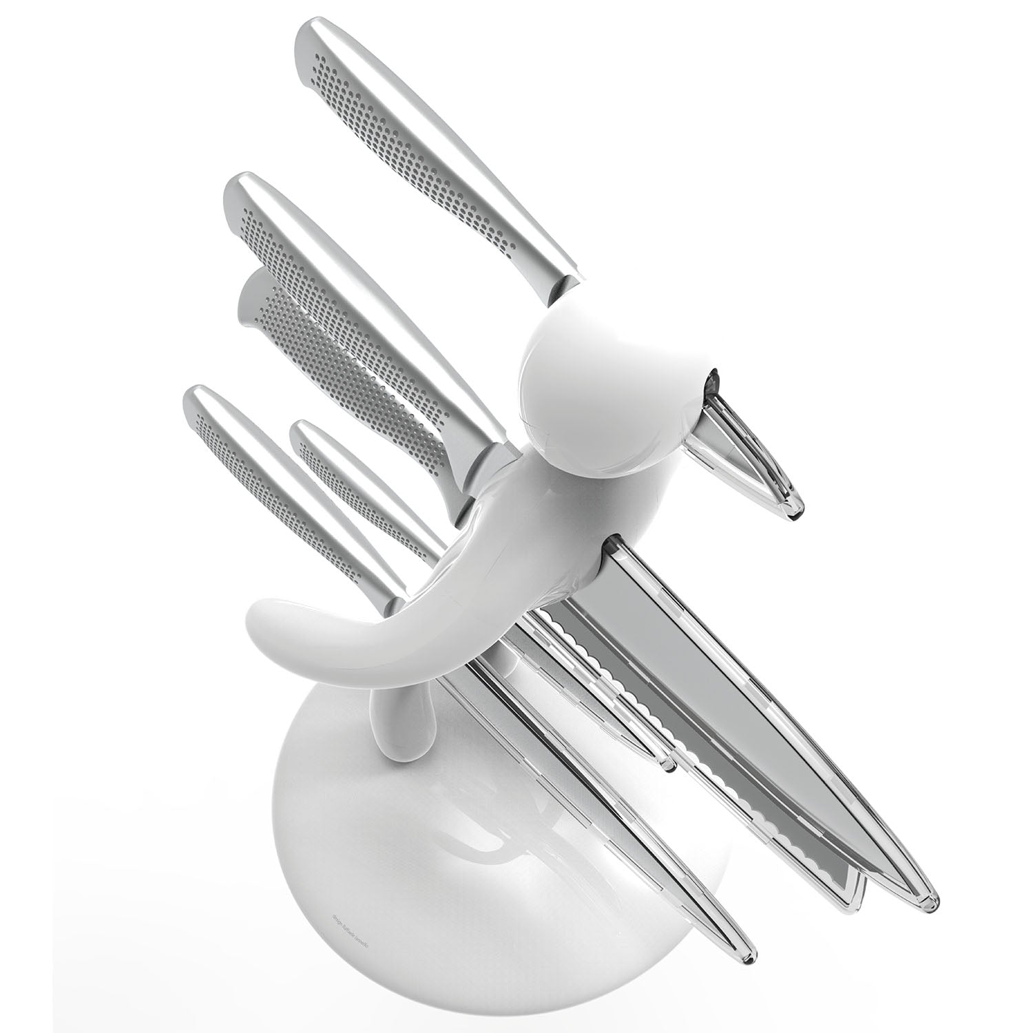 Materiali: supporto in plastica ABS, coltelli in acciaio inox con finitura satinata