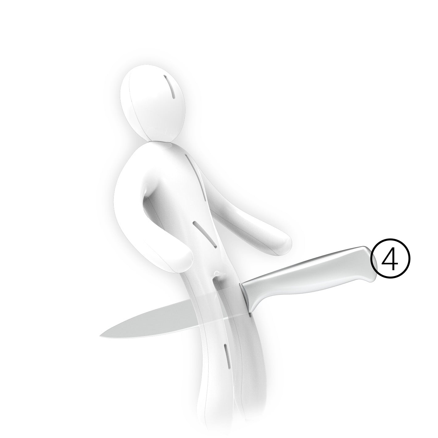 Coltelli da cucina in acciaio inox con finitura satinata. Hanno un manico ergonomico che assicura una presa perfetta in ogni circostanza. La sagoma delle lame è stata studiata per rendere i coltelli bilanciati e precisi nell’uso. L'acciaio inox in cui sono forgiati li rende molto taglienti e allo stesso tempo molto resistenti.