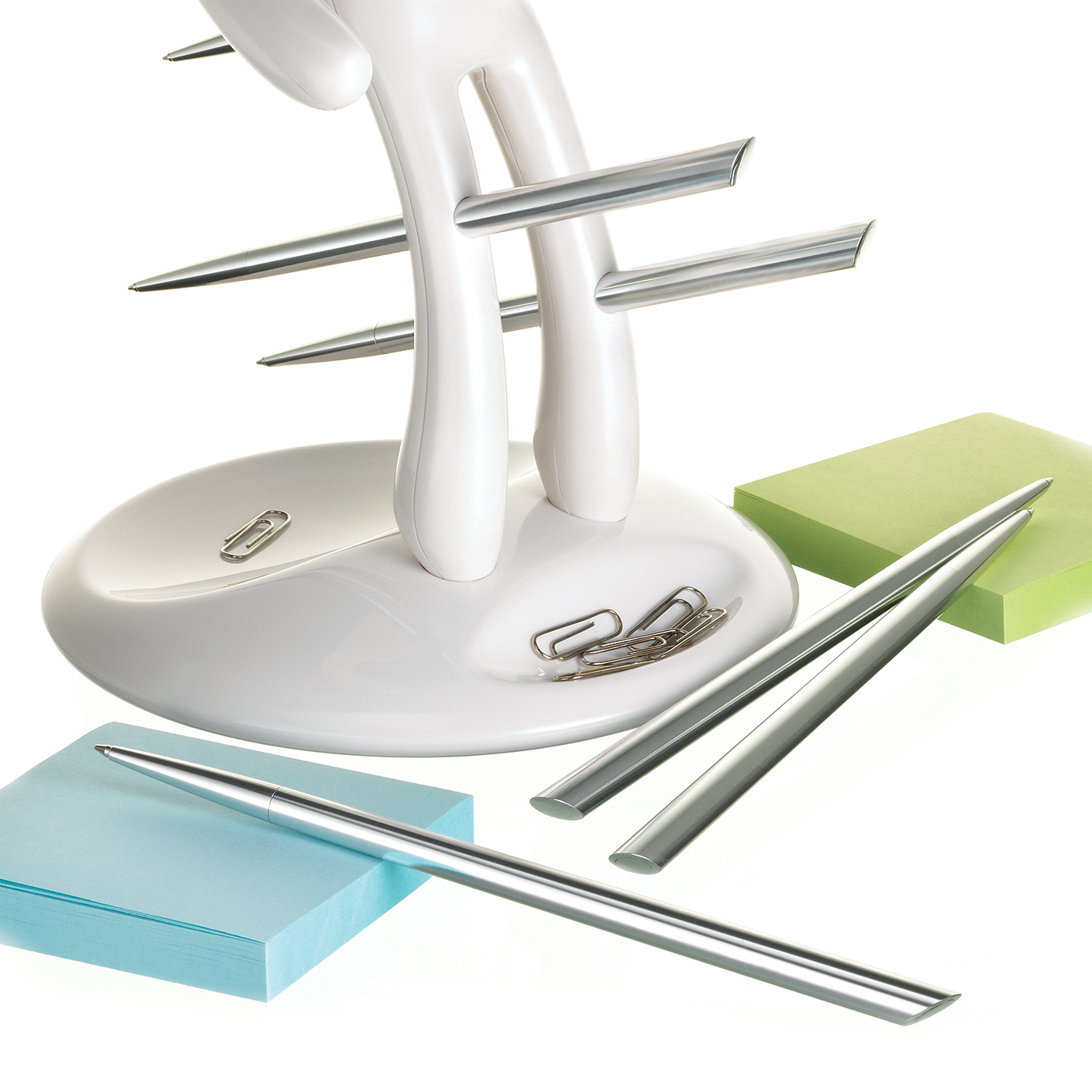 Pensato sia per la casa sia per l’ufficio, il set è composto da penne realizzate come se fossero degli spilloni.
